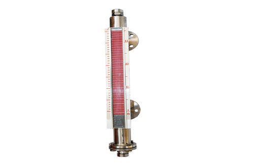 l 基本型 液位計根據浮力原理,浮子在測量管內隨液位的升降而上、下移動,浮子內的長期磁鋼通過磁耦合作用,驅動紅、白色翻柱翻轉 180 。 液位上升時,翻柱由白色轉為紅色,下降時由紅色轉為白色,從而實現液位的指示。